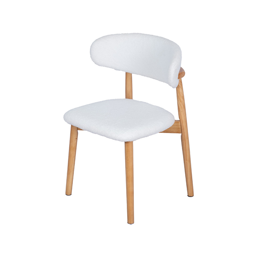 O assento e encosto em tecido bouclé branco ou couro PU na cor fendi trazem aconchego e textura refinada, proporcionando uma experiência de uso confortável e acolhedora.